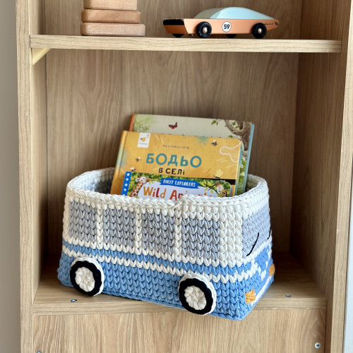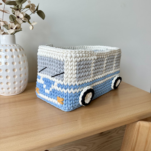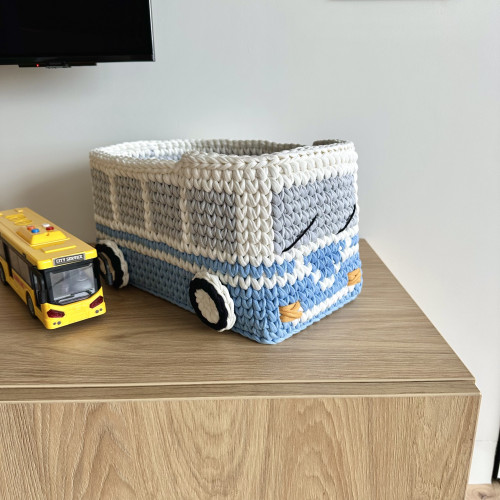 Хіба ви не хочете додати трохи веселощів у простір вашої дитини? Цей чудовий кошик ручної роботи, ідеально підійде для дитячих кімнат завдяки симпатичному дизайну у вигляді ретро автобуса.