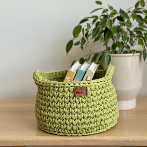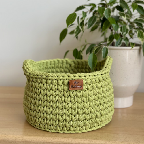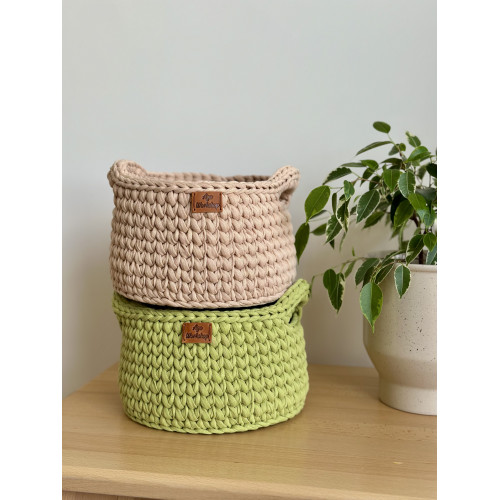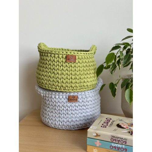 В'язаний кошик ручної роботи є чудовим помічником. Гарно виглядає як декор, дуже корисний для зберігання дитячих іграшок, косметики та інших речей.
