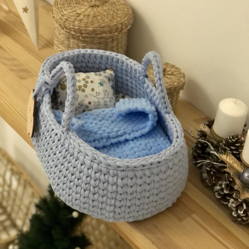 • Люлька доповнена крихітною подушкою, матрацом та в'язаним пледиком. Подушка та матрац виготовлені з гіпоалергенної бавовняної тканини та наповнені холлофайбером – синтетичним волокном, що перешкоджає розмноженню мікроорганізмів.
