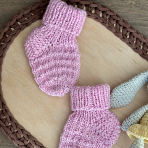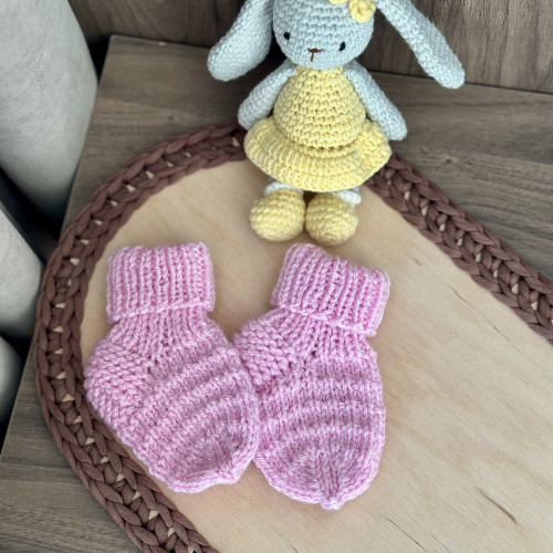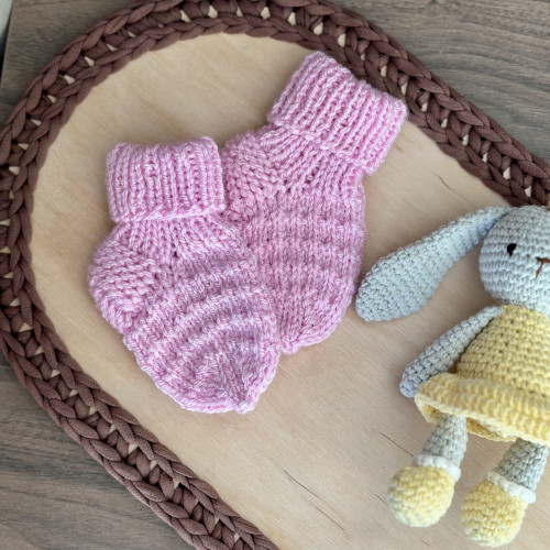 Шкарпетки виготовлені з ніжної пряжі, в складі якої 50% акрилу та 50% бавовни. Пряжа приємна до тіла, добре гріє ніжку, не парить. Малюкам буде тепло та затишно в них, вони не відчуваються на ніжці, не сповзають, добре тримаються. На підошві шкарпеток немає швів, малюкам зручно робити свої перші кроки. Шкарпетки можна прати в пральній машинці, сушити їх рекомендується у горизонтальному положенні.